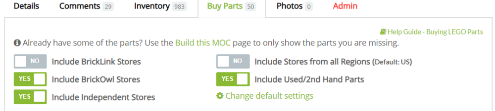 I would love to see a feature for MOC makers that allows for adding a list of possible substitutions in the MOC. E.g.: in step X you can replace 2x part A with 4x part B. When the user selects a substitution, the inventory can be updated automatically. When adding the inventory to a MOC, Rebrickable could show a list with the rarest and most expensive parts as suggestions to provide a substitution for.
