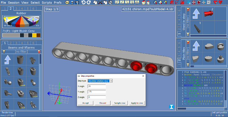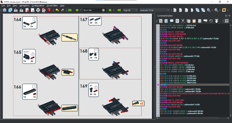 When Dadudi is working on my renders, I can go to another program - Lpub3d - and make all the pages. I create every page individually, mainly by using options like "add next step" or "convert to callout". That's not all of course, because the program does not control the step size or how many steps must be at page - this is what I have to do. Let;s take a look at the roof submodel.
