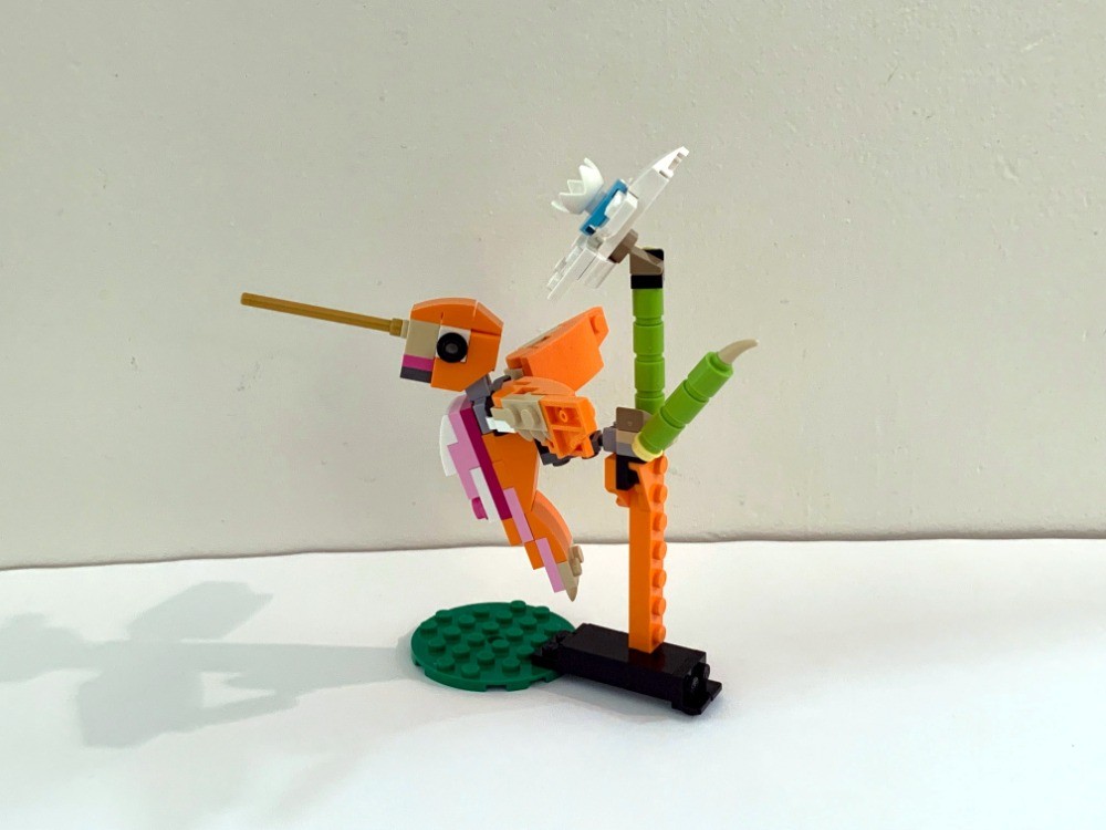 This model is somewhat fragile, definitely for display rather than play. The colors are loosely based on a male rufous hummingbird.
