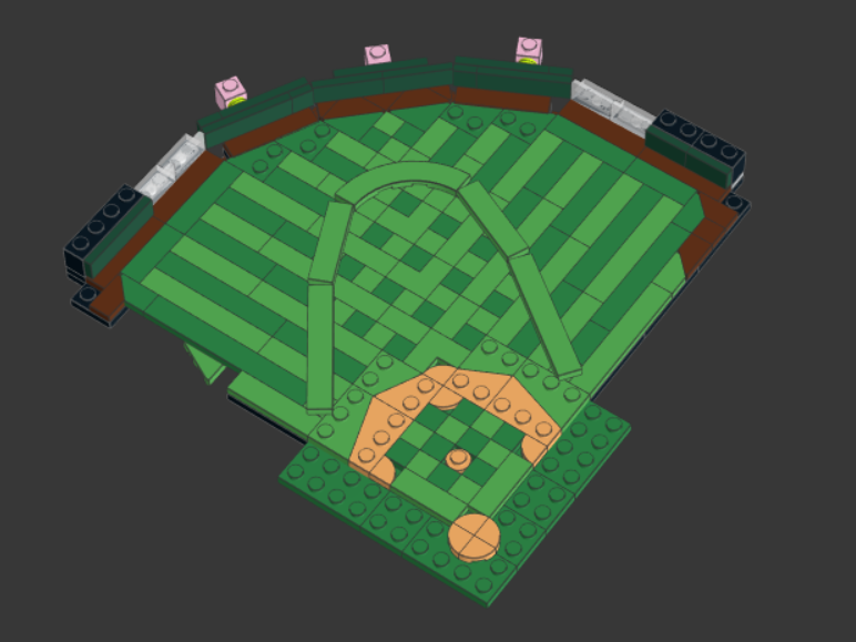 Thank you. I am rather busy for about a week or so, so probably not much progress will be made in that time, but after that I hope to figure out a way to do the seats. I also want to lower the outfield wall by half a stud to make it flush with the field, which is why I redid the warning track (hey it also removes 8 total studs, yay).